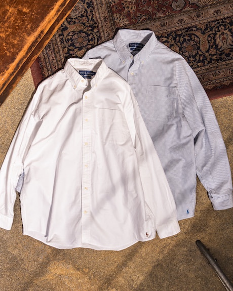 ビッグフィットシャツは、通常右裾にあるポロポニーロゴを左裾へと配置換え。また、過去の展開でも人気をさらったビッグチノは、新たにポロポニーロゴを左ポケット下へと大胆に施すことで、トップスで隠れがちな〈POLO RALPH LAUREN〉のアイコンをコーディネート上で可視化する工夫を凝らしました。