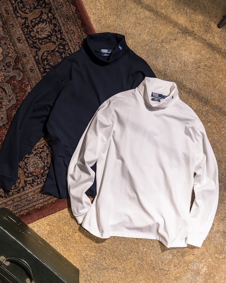 また、タートルネックは過去の別注でも展開のない初製作のアイテムとなり、キャップはつばの深さを長めにとった新型でポロポニーロゴを後ろ側へと移動。そして、ソックスは、リブ下とくるぶし付近の2箇所にポロポニーロゴをあしらっています。